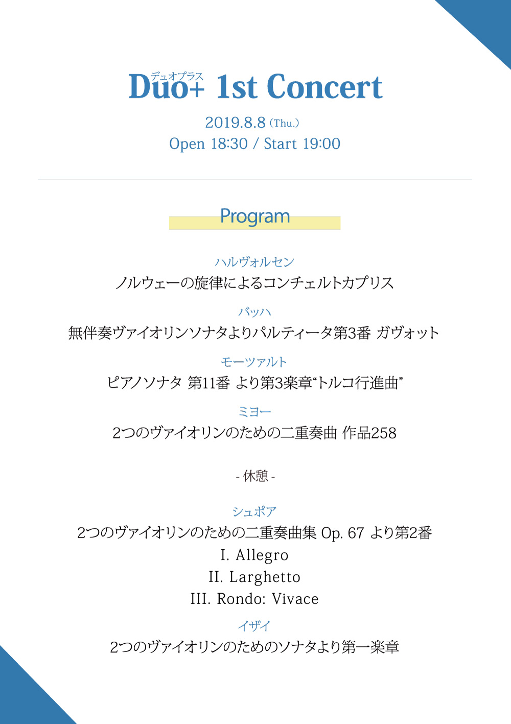 ここだけのマル秘トークとコンサート♪プロオケで活躍中のヴァイオリンデュオによる、一夜限りのスペシャルコンサート。第1回は音楽学校生活編として、二人が学校生活の中で触れてきた楽曲・試験などを語ります。 普段は耳にすることのない、プロオケへ通じるお話と演奏が盛りだくさん!お楽しみください。