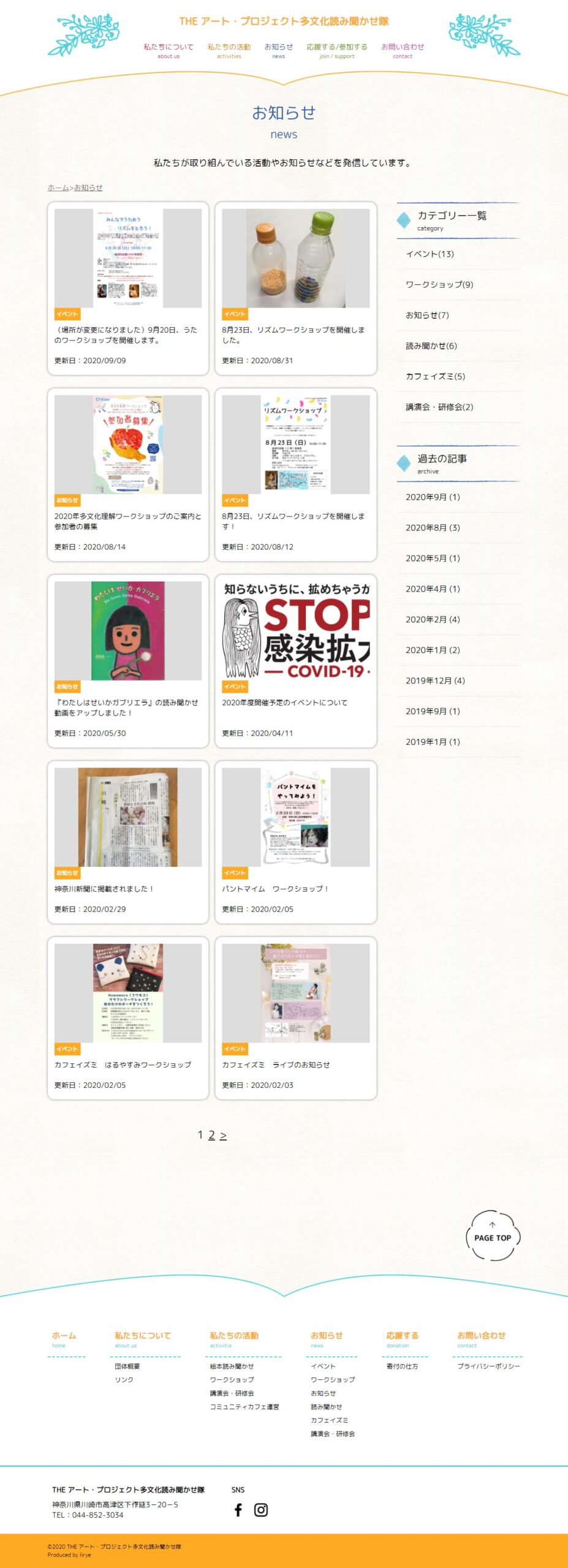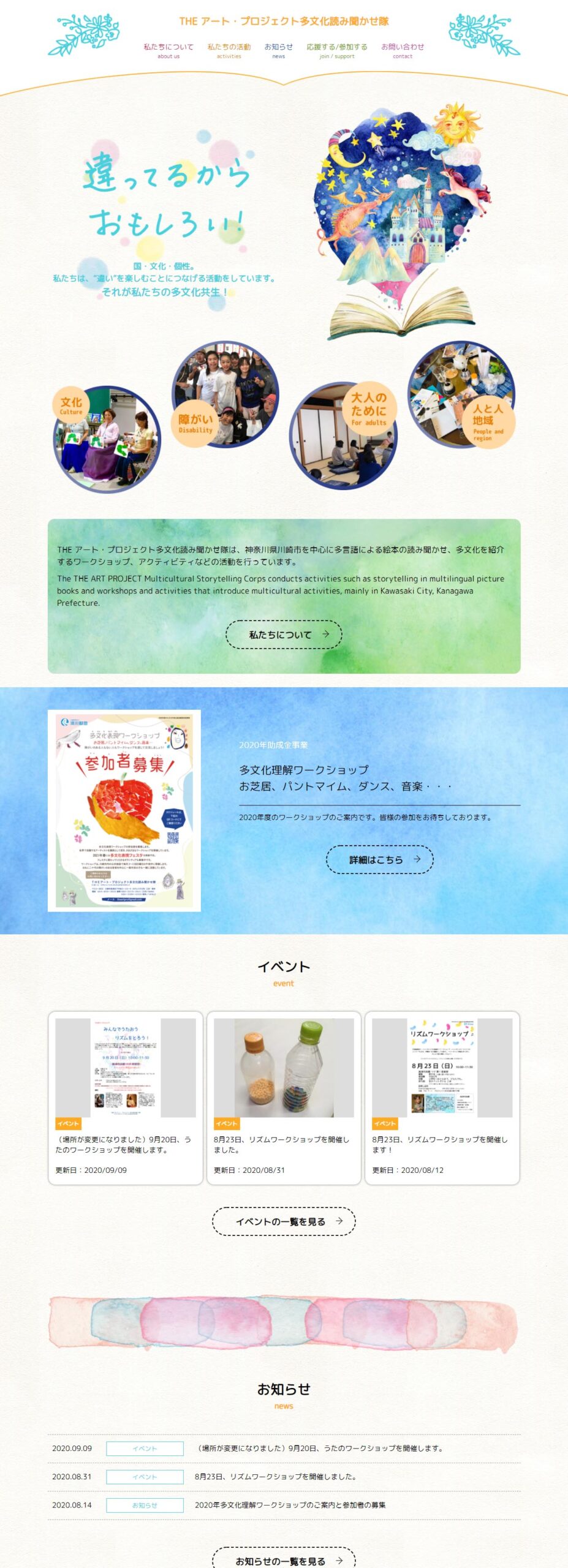 神奈川県川崎市で活動されている、、THE アート・プロジェクト多文化読み聞かせ隊様のホームページを制作致しました。